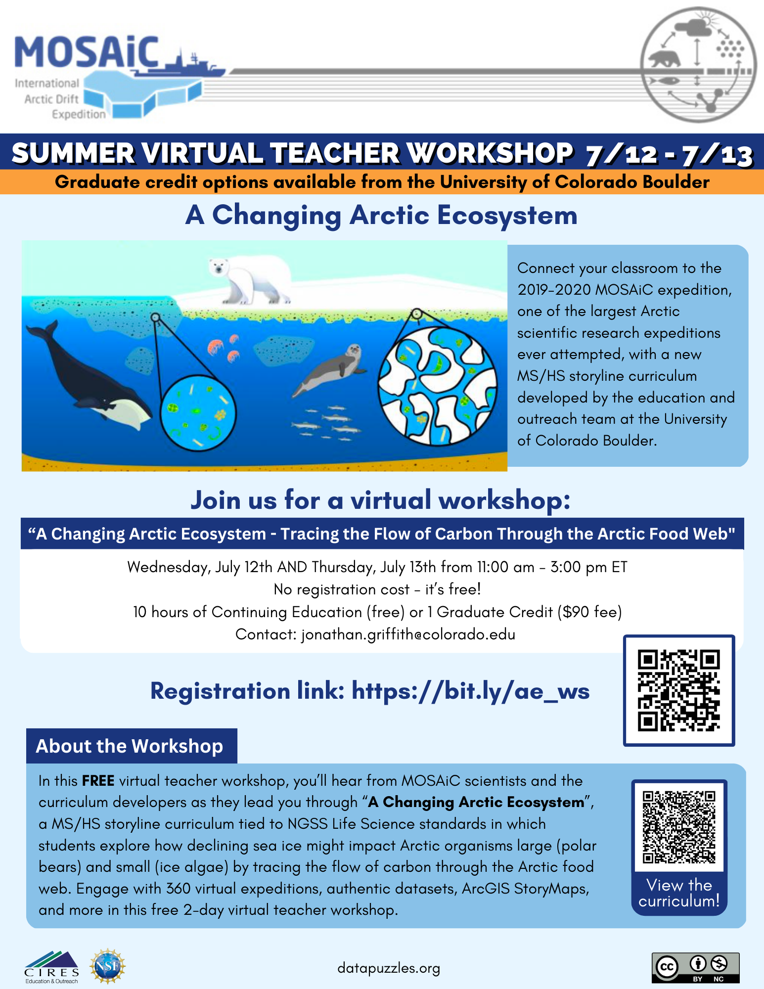 Workshop #2 - A Changing Arctic Ecosystem - July 12-13, 11-3 pm each day